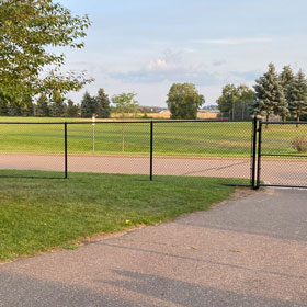 Perfect for backyards, dog enclosures, and property boundaries, our custom-designed black vinyl chain link fences are a popular choice for Minneapolis homeowners looking for both form and function. With a smooth, rust-resistant coating, our expert fencing team will install a chain link fence that blends seamlessly into any landscape while providing a sturdy and secure boundary!